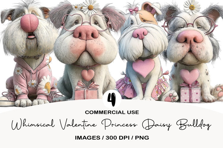Funny Clipart Valentine's Day Clipart Sublimation Png Valentine's Day Sublimation Clipart Sublimation Png Clipart Design Clipart Png Bundle Animals Png Design Watercolor Funny Png Whimsical Valentine Princess Daisy Bulldog Clipart