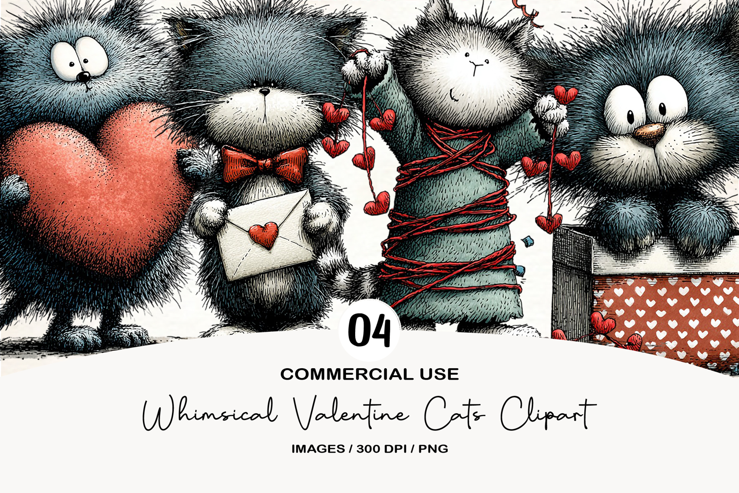Whimsical Valentine Cats Clipart