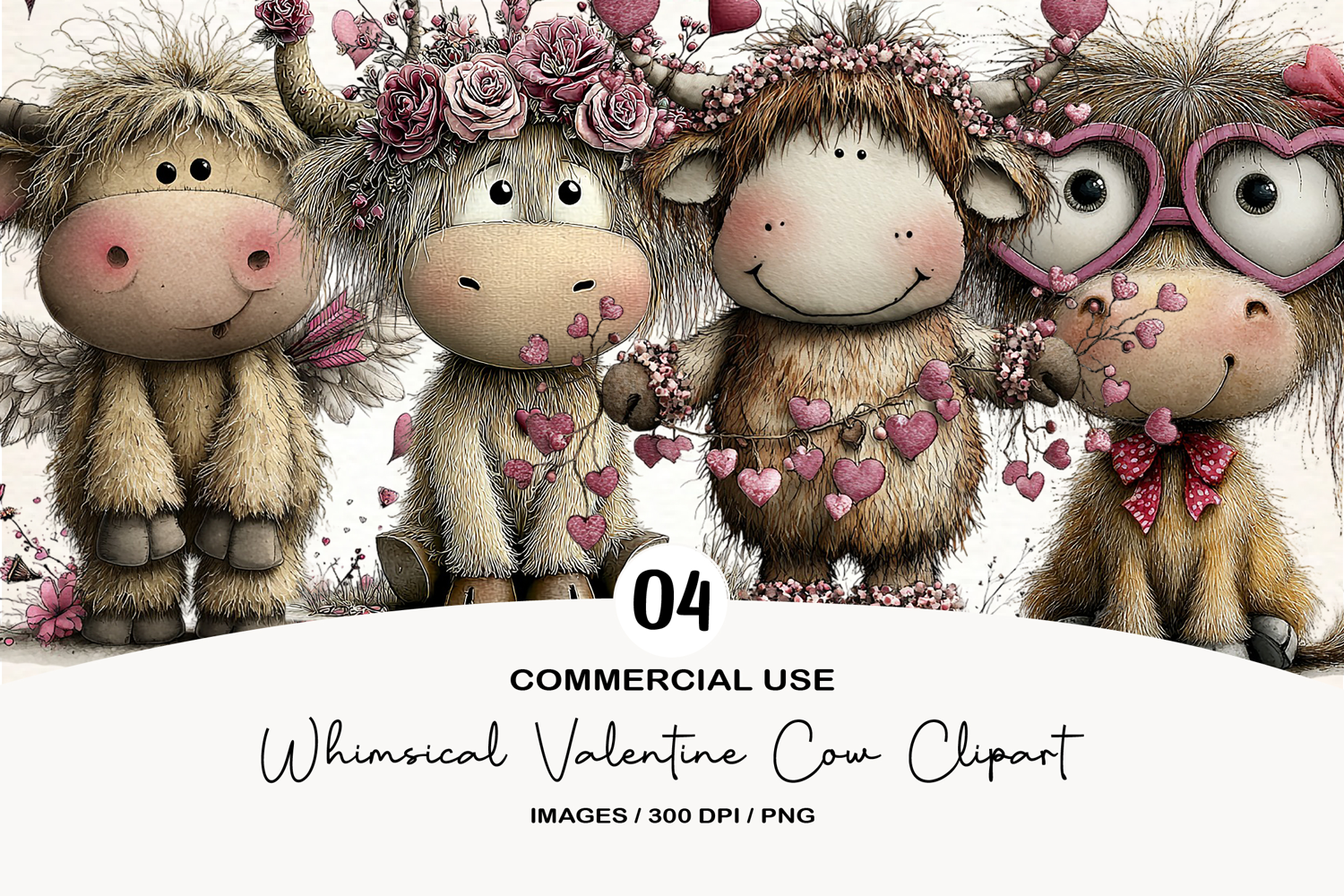 Whimsical Valentine Cow Clipart