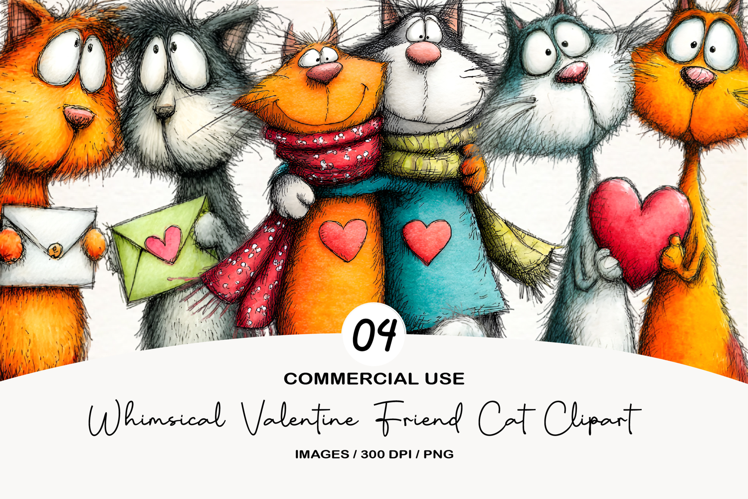 Whimsical Valentine Friend Cat Clipart example image 1