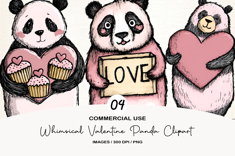 Similar Design Products to Whimsical Valentine Panda Clipart