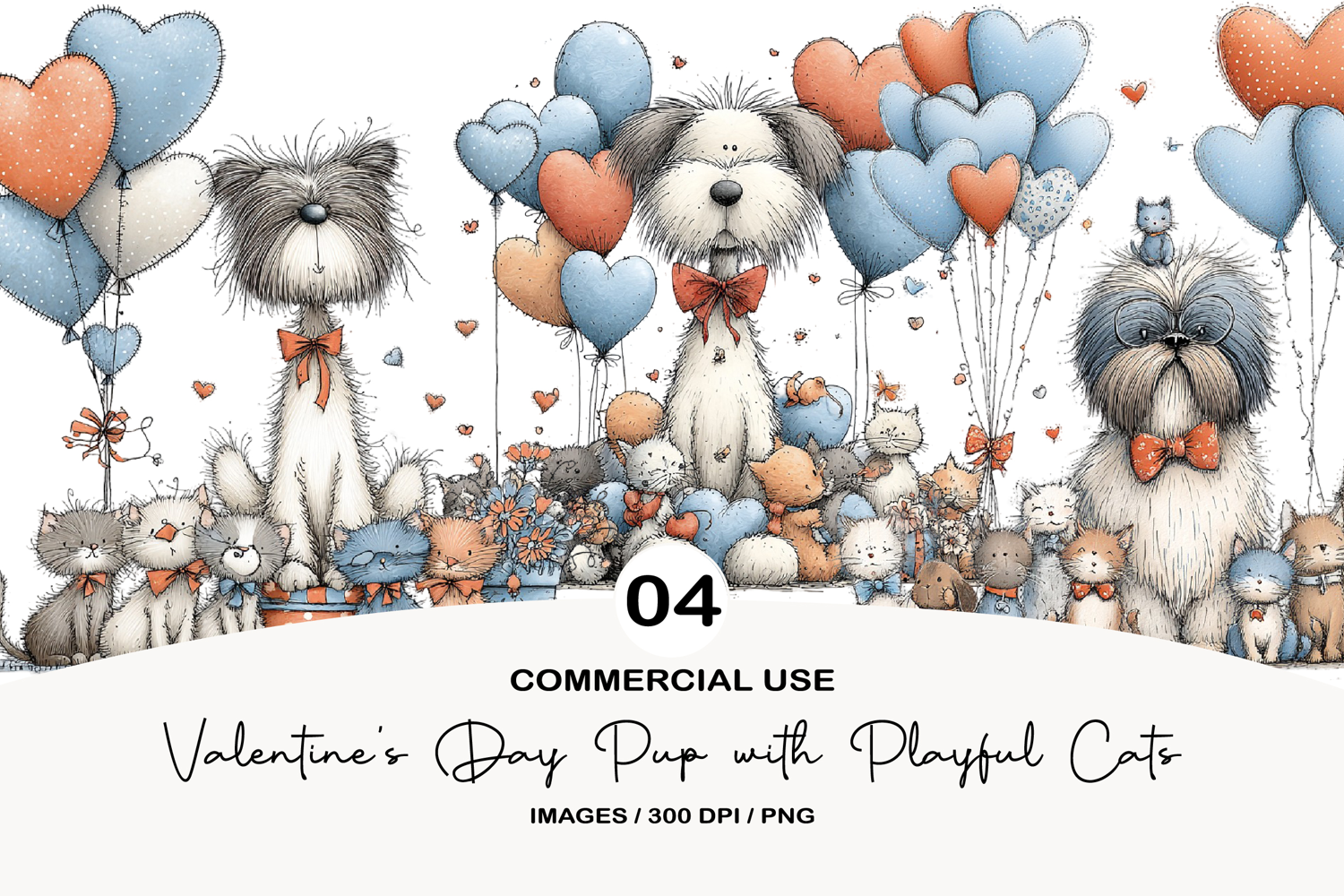 Valentine's Day Clipart Sublimation Png Valentine's Day Sublimation Clipart Sublimation Png Clipart Design Clipart Png Bundle Animals Png Design Watercolor Funny Png Valentine Funny Clipart Valentines Day Pup With Playful Cats