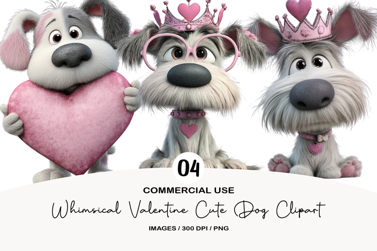 Whimsical Valentine Cute Dog Clipart example image 1