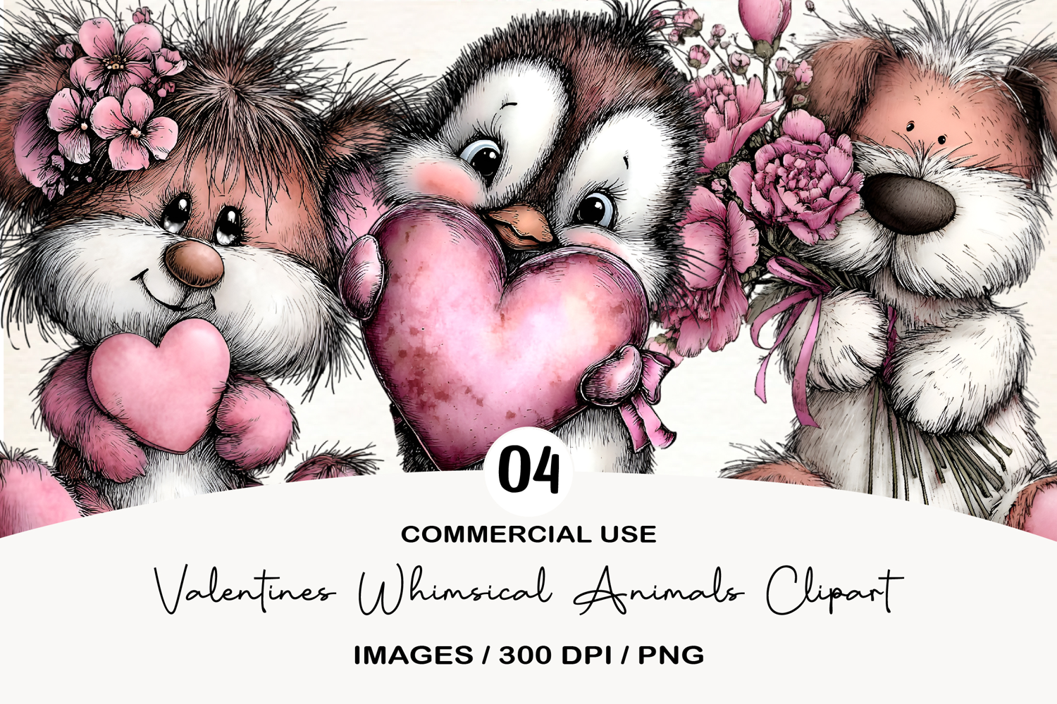 Valentine's Day Clipart Sublimation Png Love Sublimation Valentine's Day Sublimation Whimsical Valentine Clipart Png Bundle Animals Png Design Watercolor Funny Png Valentines Whimsical Animals Clipart Valentine Funny Clipart