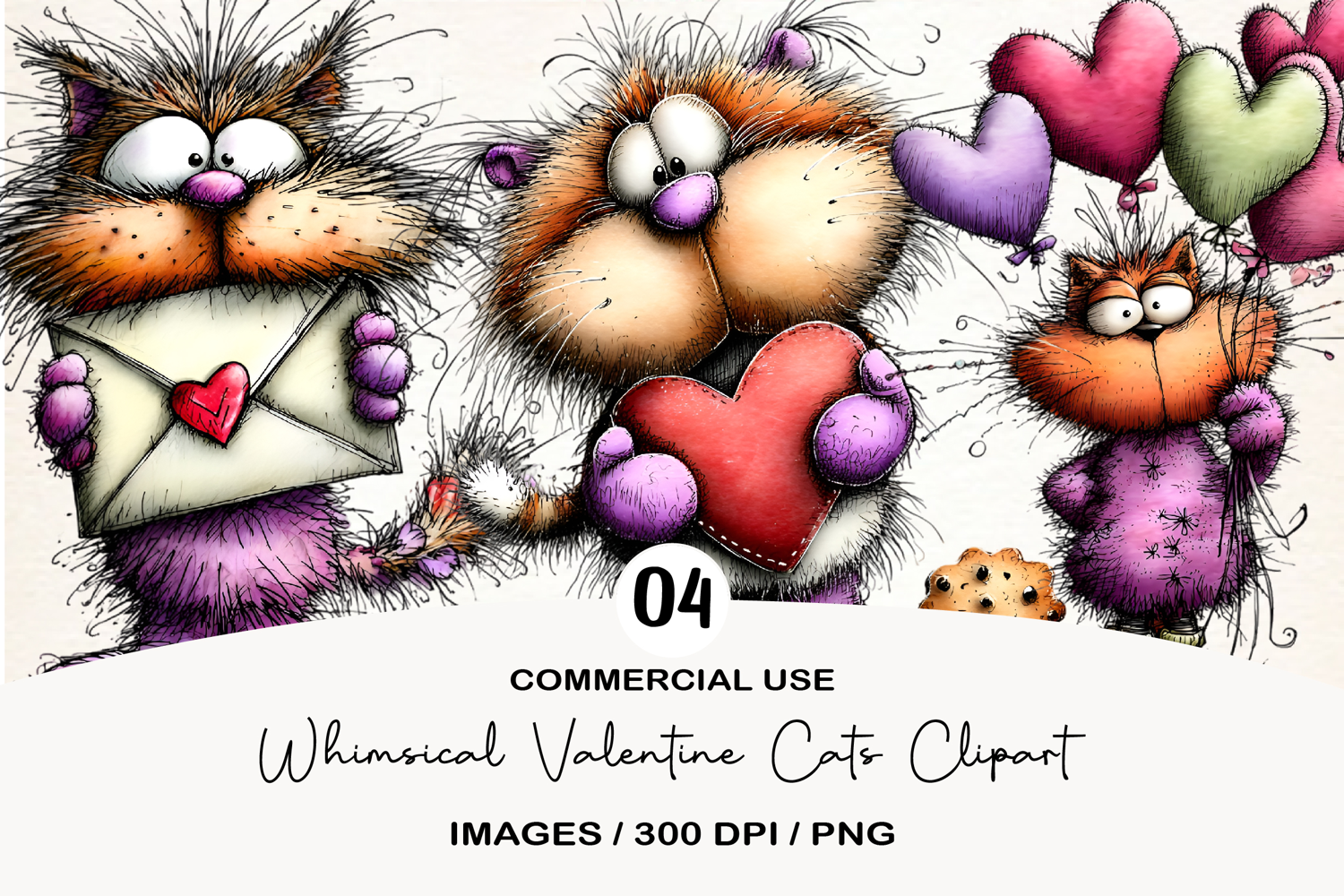 Whimsical Valentine Cats Clipart example image 1