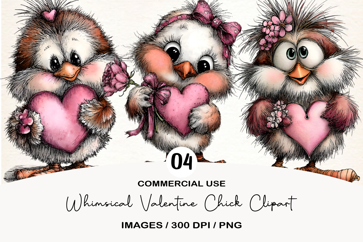 Whimsical Valentine Chick Clipart example image 1