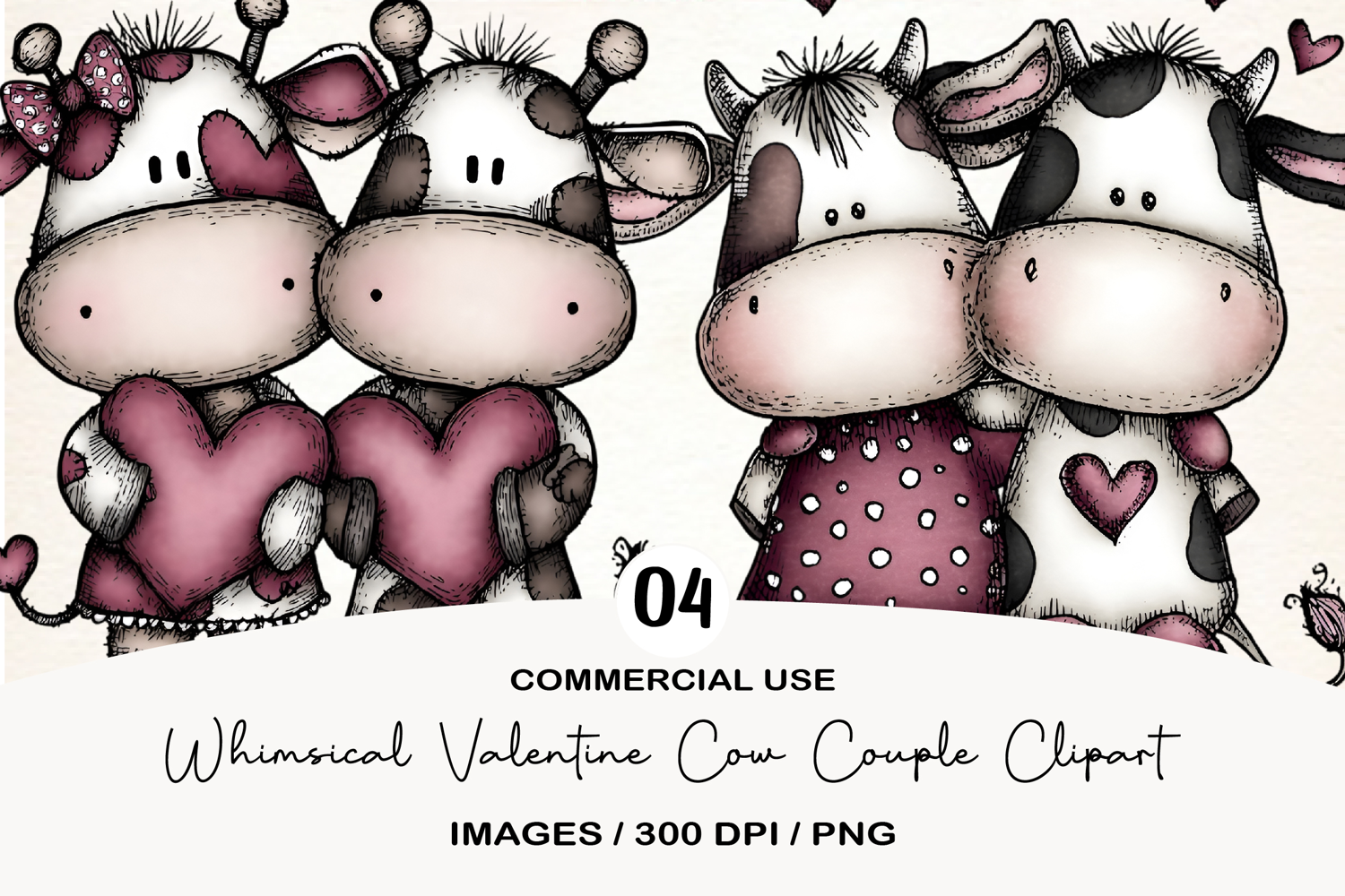 Similar Design Products to Whimsical Valentine Cow Couple Clipart