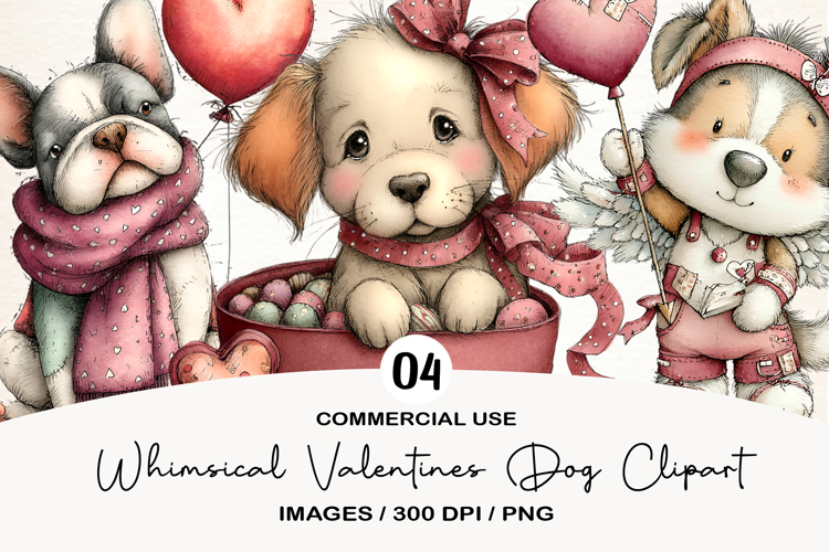 Similar Design Products to Whimsical Valentines Dog Clipart