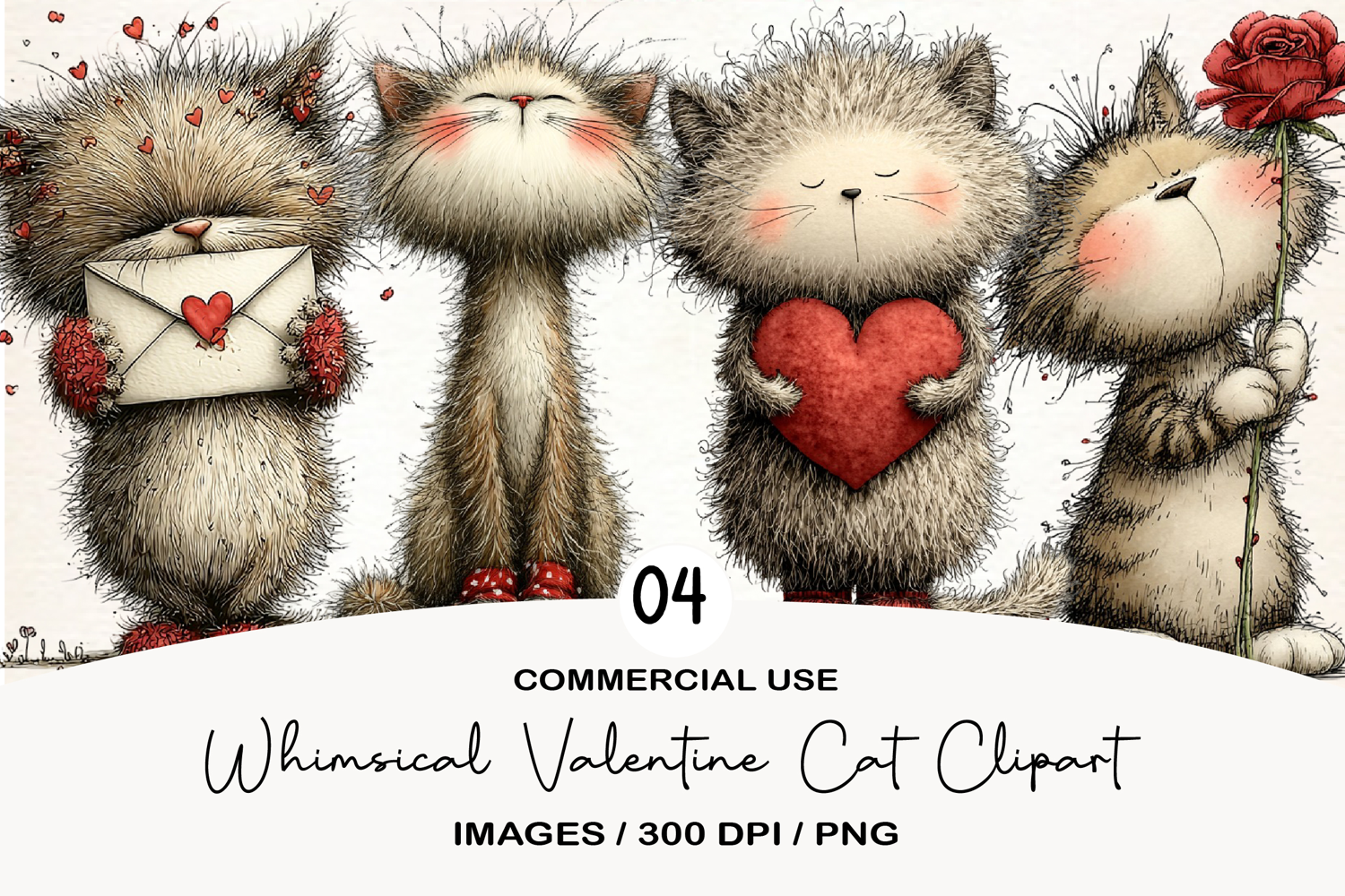 Whimsical Valentine Cat Clipart