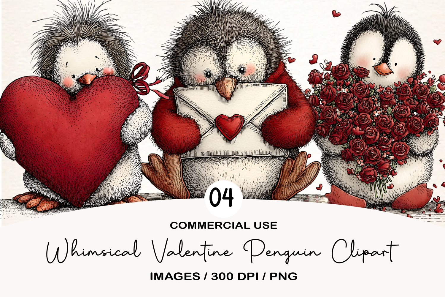 Similar Design Products to Whimsical Valentine Penguin Clipart