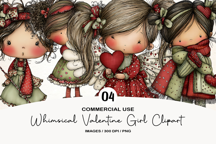 Whimsical Valentine Girl Clipart