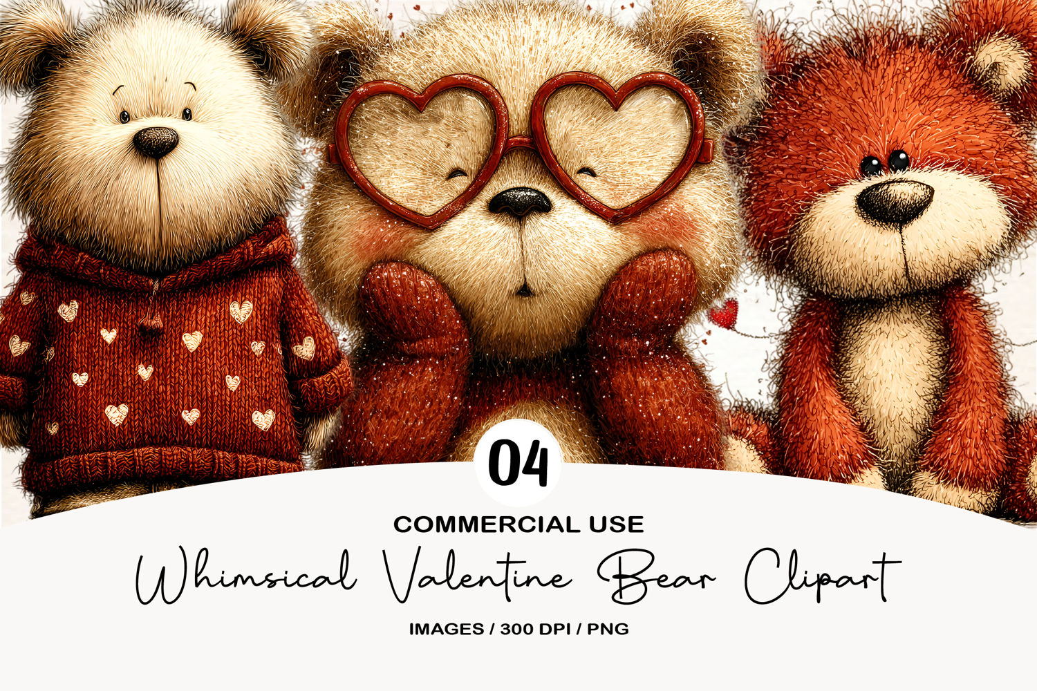 Whimsical Valentine Bear Clipart PNG example image 1