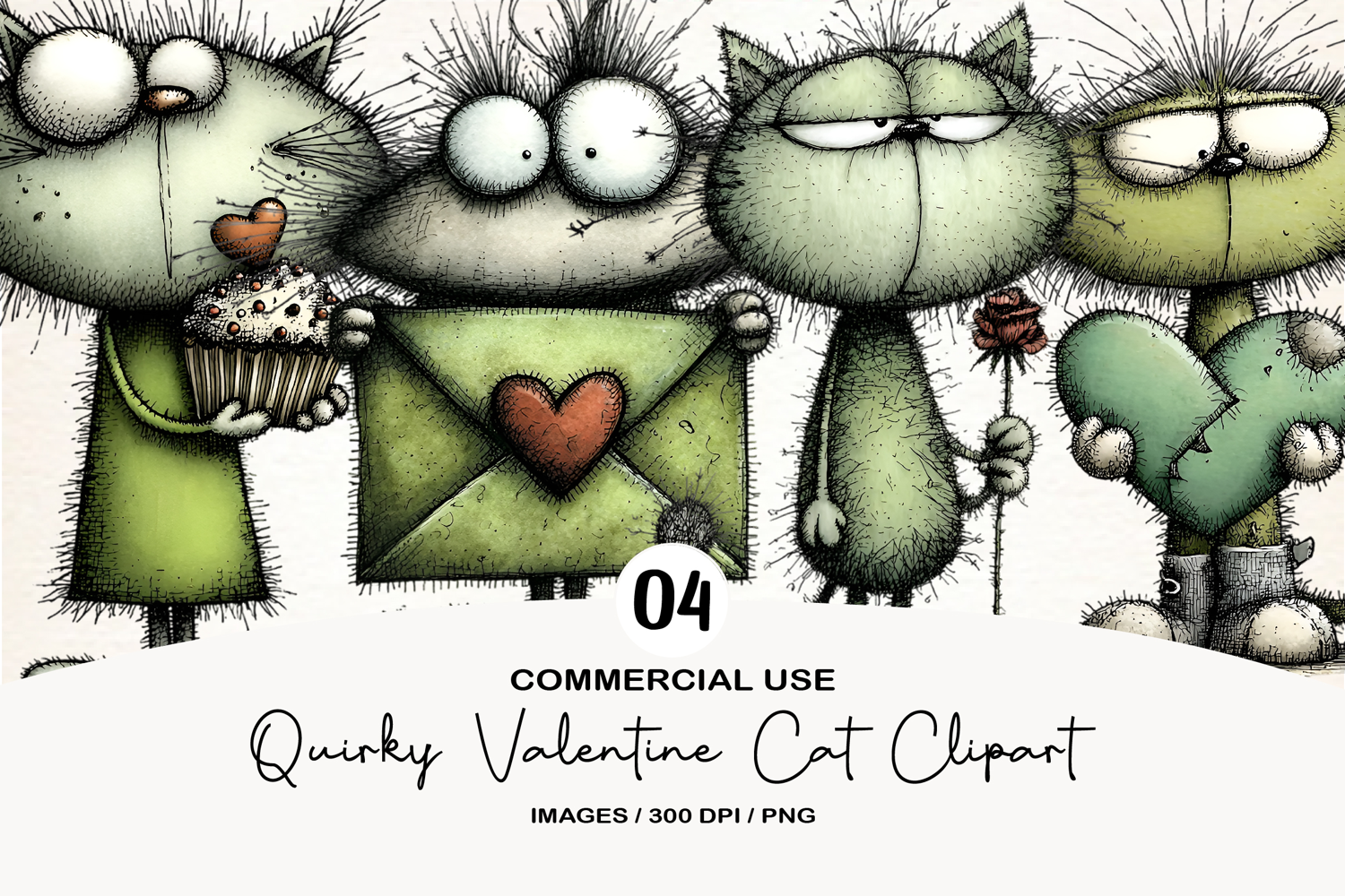 Quirky Valentine Cat Clipart example image 1
