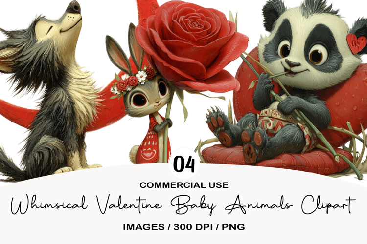 Similar Design Products to Whimsical Valentine Baby Animals Clipart