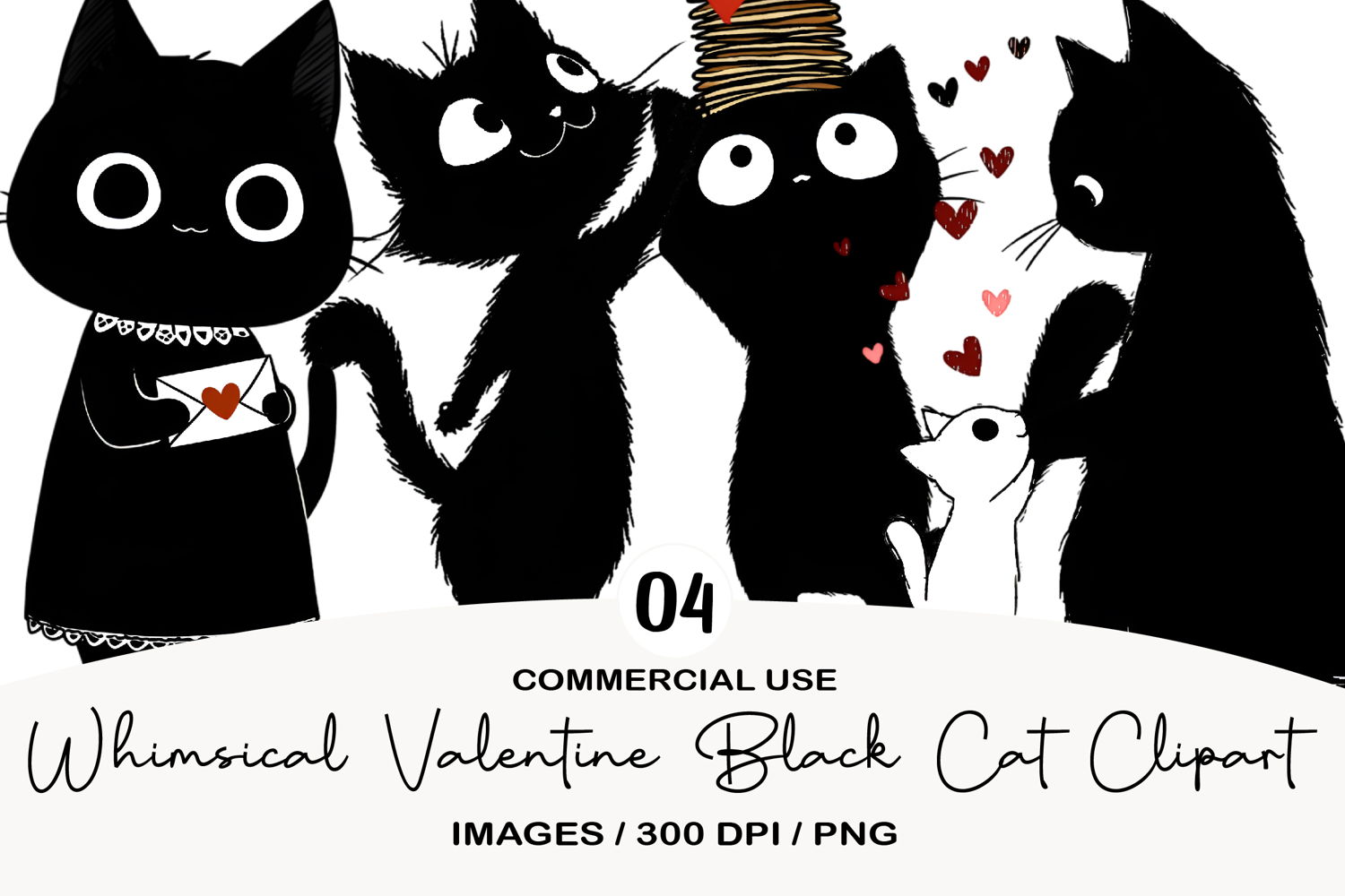 Whimsical Valentine Black Cat Clipart example image 1