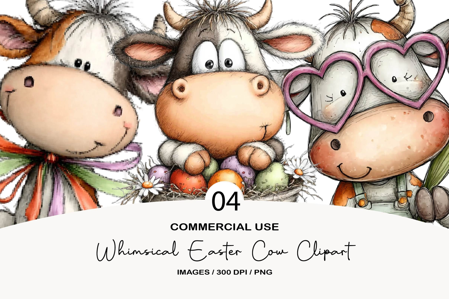 Illustration Watercolor Clipart Watercolor Easter Easter Clipart Animals Clipart Bunny Clipart Cute Easter Easter Animals Bunny Cute Whimsical Easter Cow Clipart