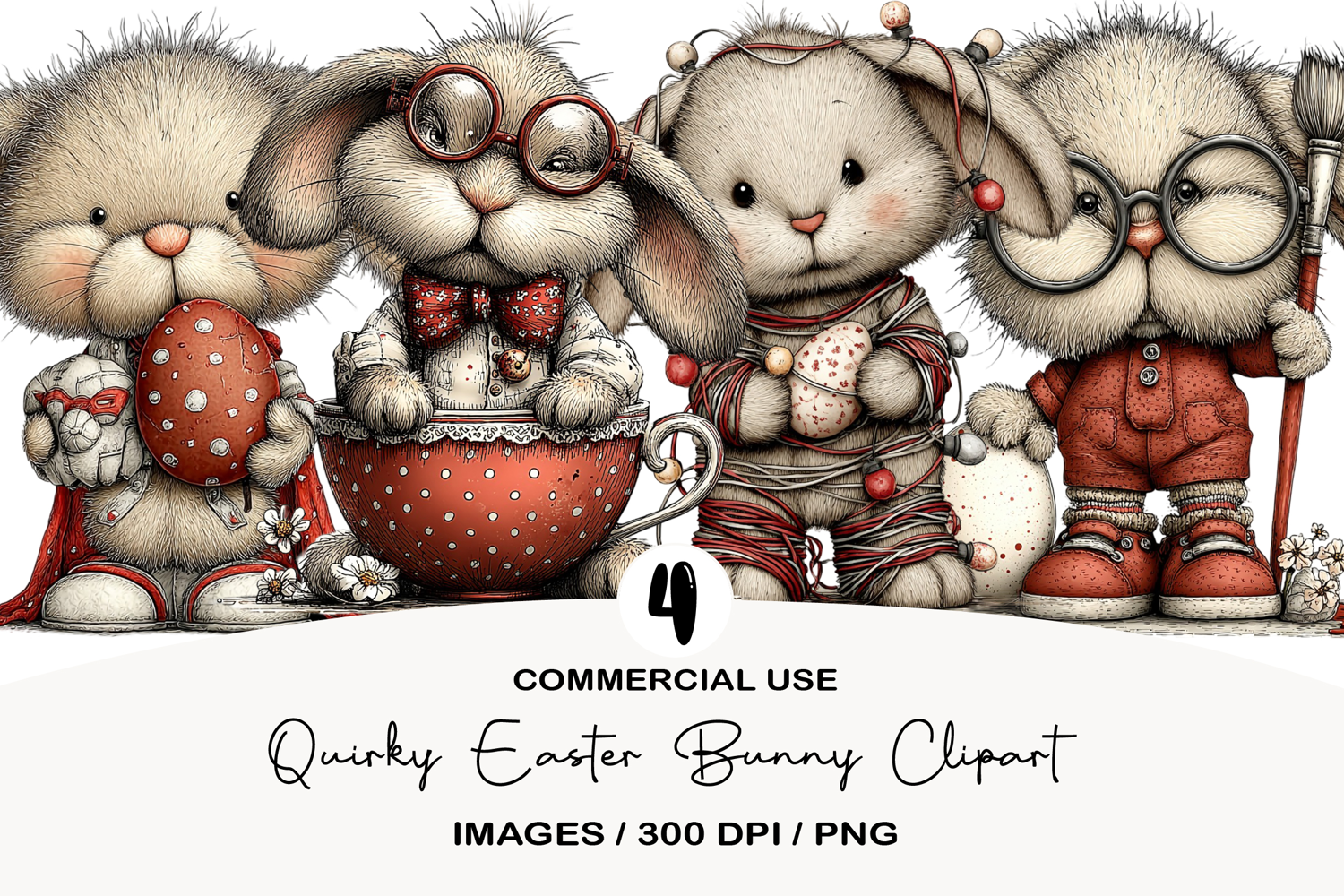 Quirky Easter Bunny Clipart example image 1