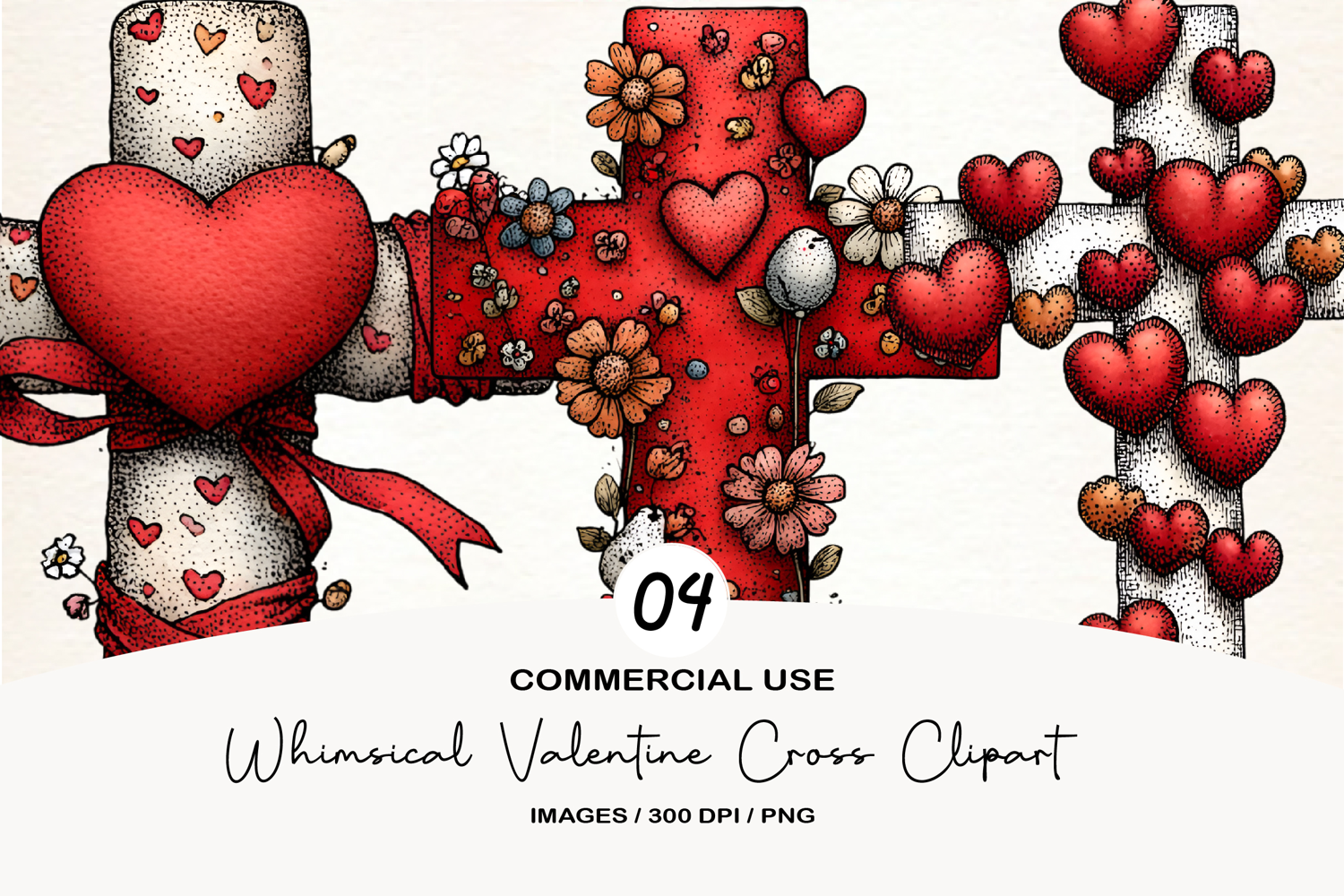 Whimsical Valentine Cross Clipart example image 1