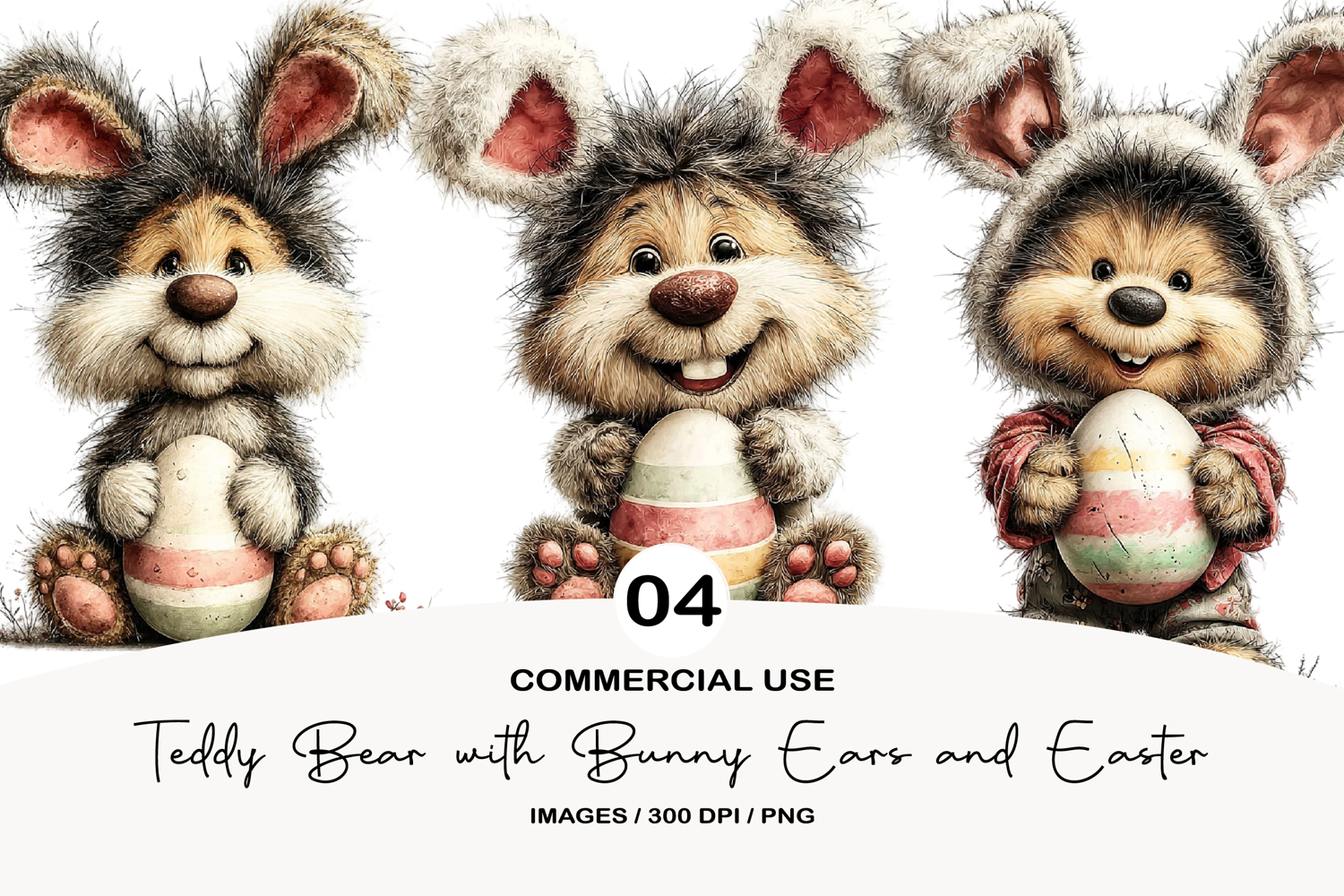 Teddy Bear with Bunny Ears and Easter Egg Clipart example image 1