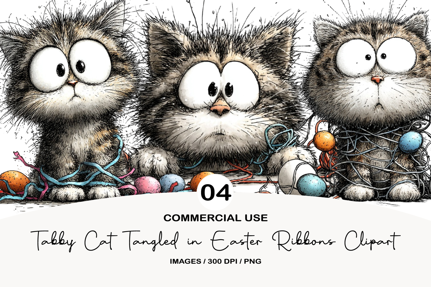 Similar Design Products to Tabby Cat Tangled in Easter Ribbons Clipart