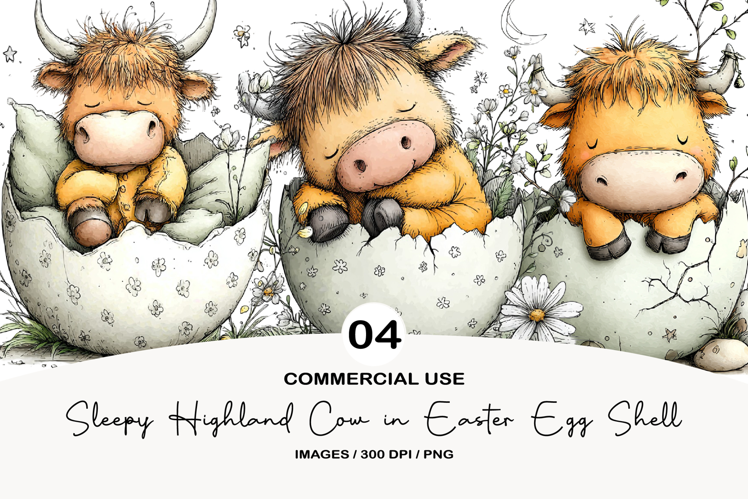 Similar Design Products to Sleepy Highland Cow in Easter Egg Shell Clipart