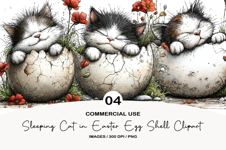 Similar Design Products to Sleeping Cat in Easter Egg Shell Clipart
