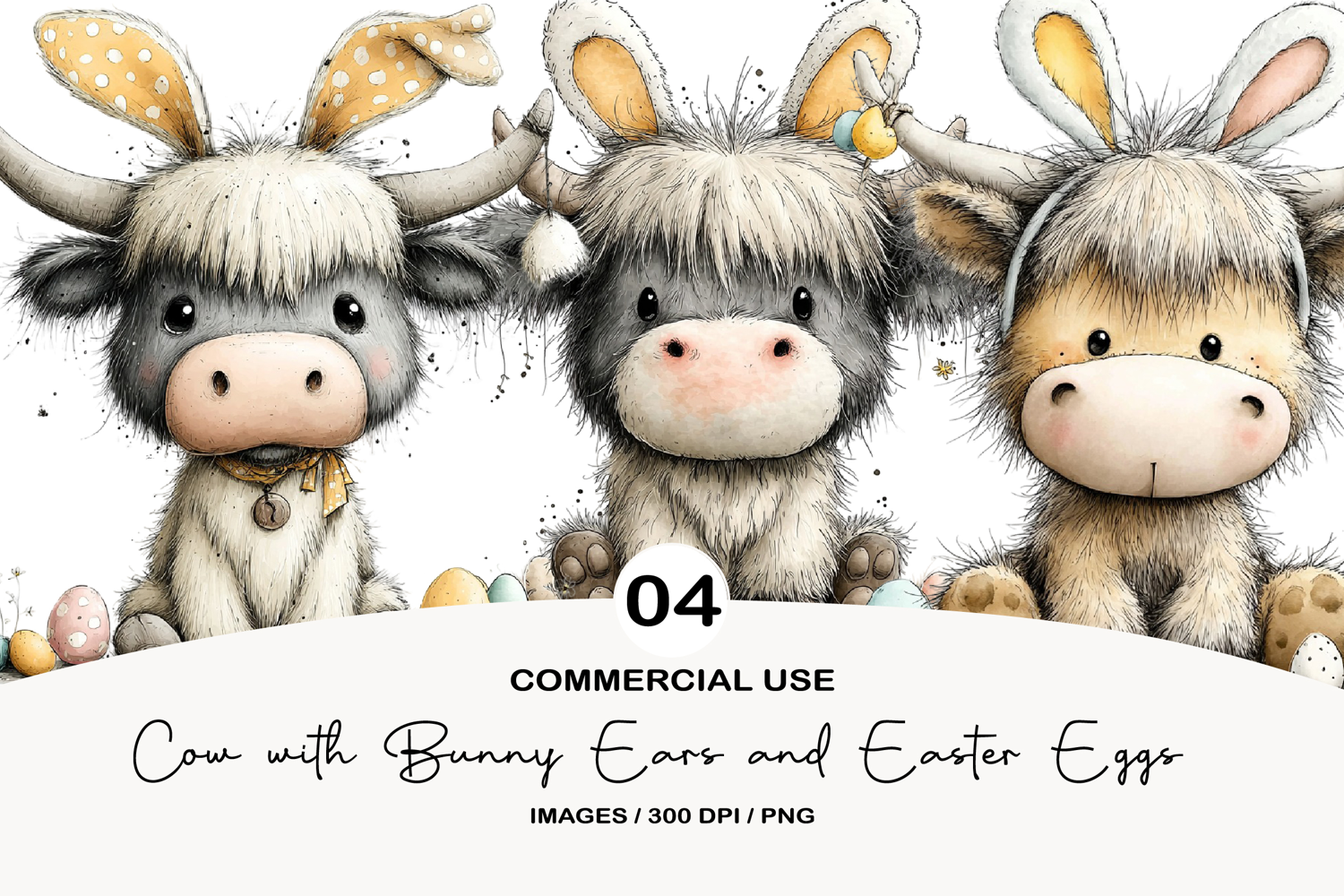 Similar Design Products to Highland Cow with Bunny Ears and Easter Eggs Clipart