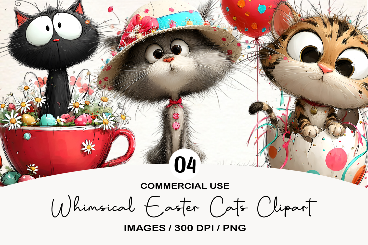 Whimsical Easter Cats Clipart