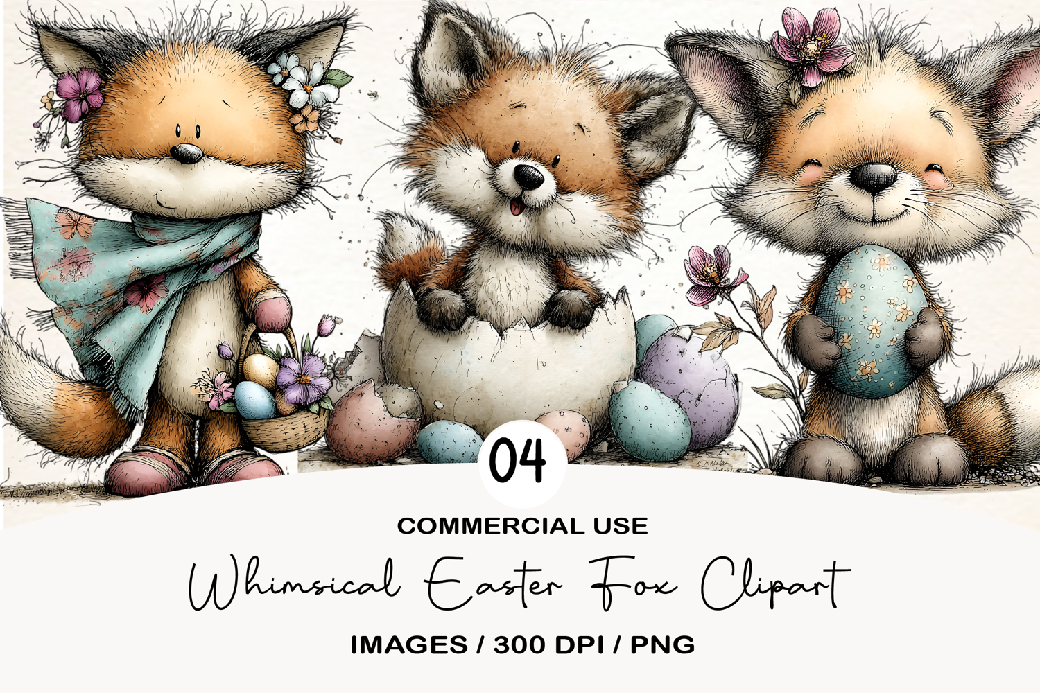 Spring Whimsical Easter Easter Eggs Digital Download Sublimation Easter Clipart Easter Sublimation Easter Png Clipart Whimsical Easter Fox Clipart