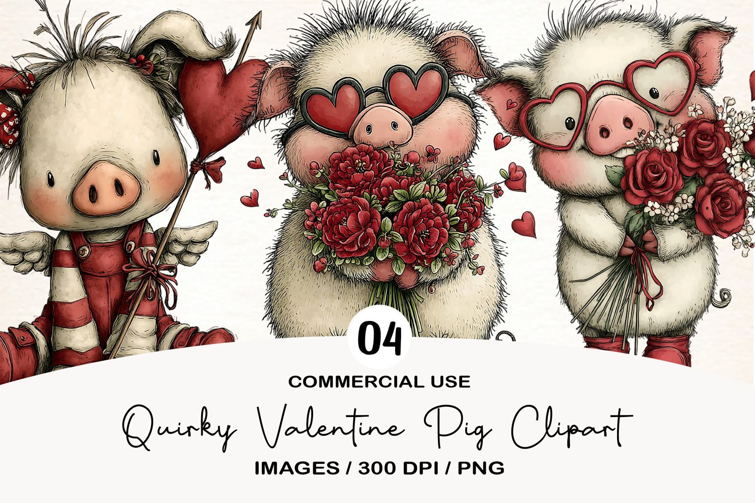 Valentine Whimsical Love Digital Download Valentine Clipart Sublimation Valentine Love Valentine Sublimation Valentine Png Clipart Quirky Valentine Pig Clipart