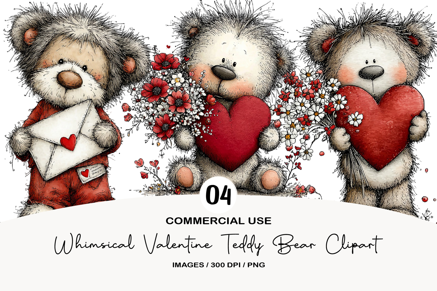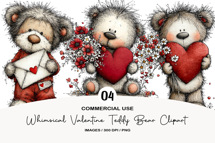 Whimsical Valentine Teddy Bear Clipart example image 1