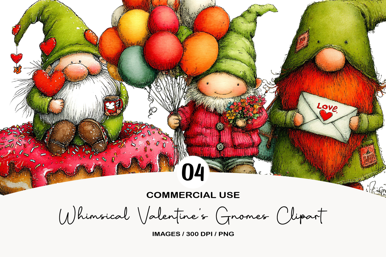 Whimsical Valentine's Gnomes Clipart example image 1