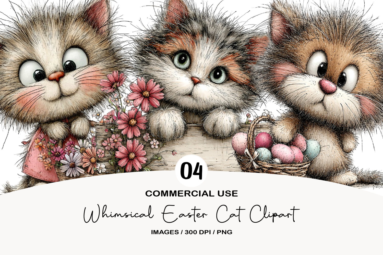 Whimsical Easter Cat Clipart example image 1