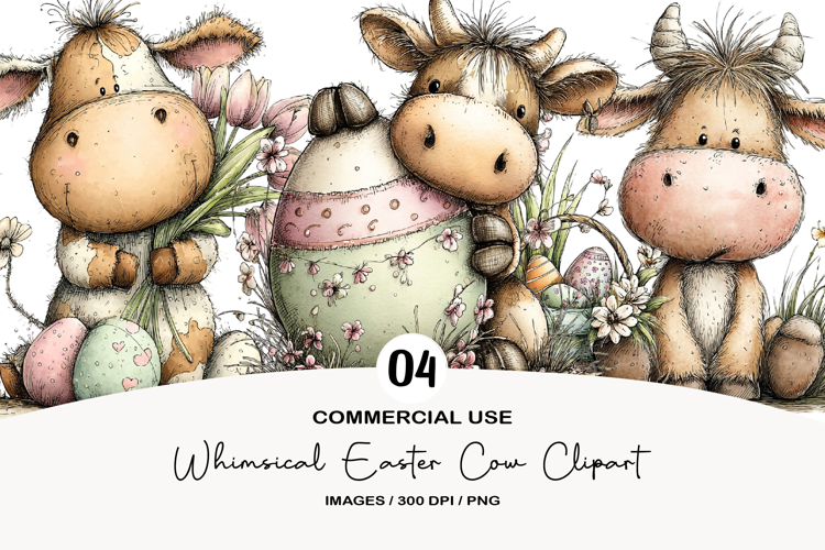 Whimsical Easter Cow Clipart