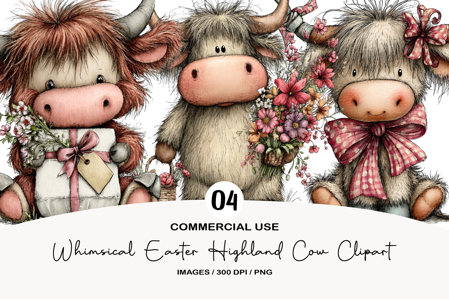 Whimsical Easter Highland Cow Clipart
