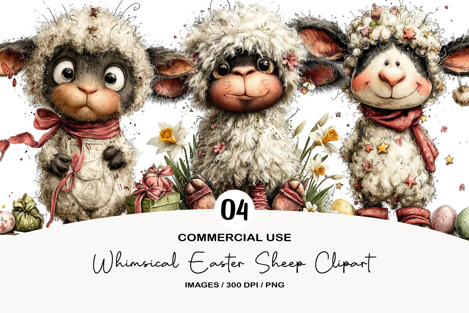 Whimsical Easter Sheep Clipart
