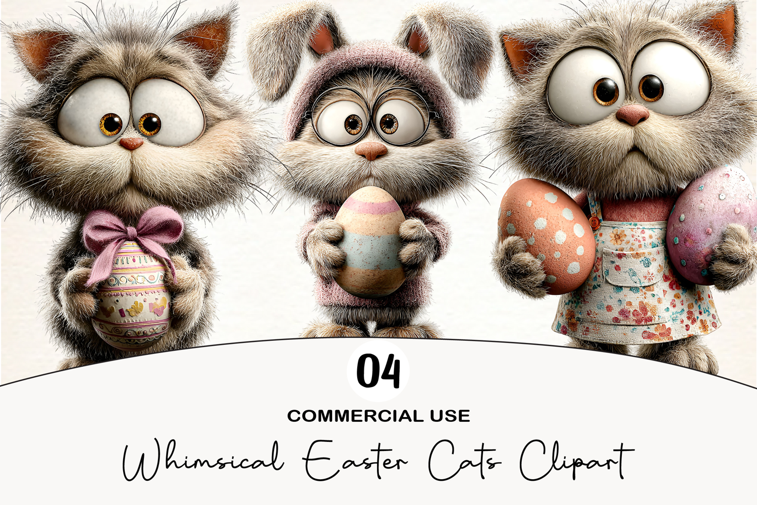 Whimsical Easter Cats Clipart