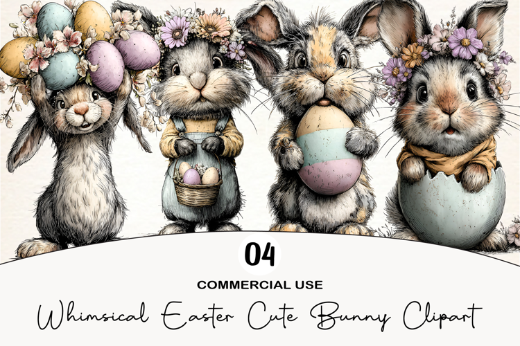Whimsical Easter Cute Bunny Clipart
