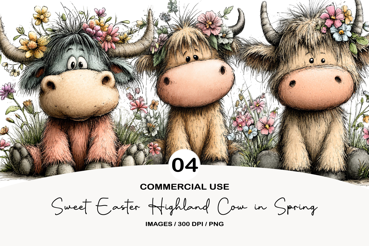 Sweet Easter Highland Cow in Spring Garden Style