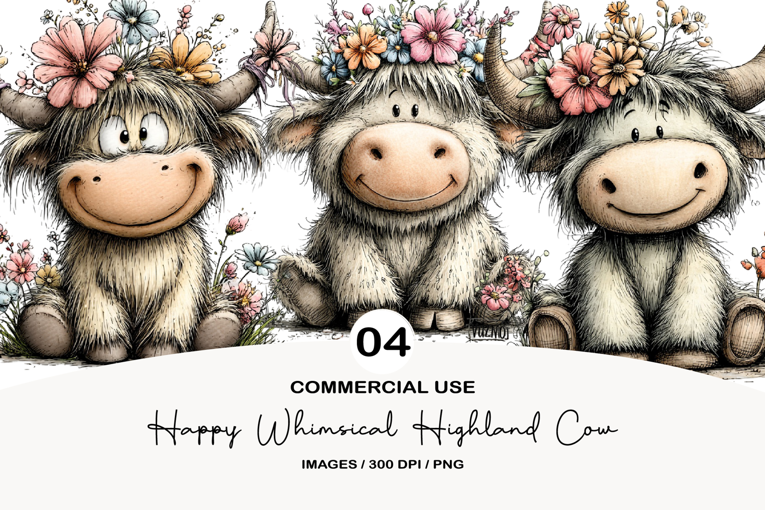 Illustration Png Easter Sticker Clipart Bundle Easter Clipart Sublimation Design Easter Png Spring Sublimation Easter Sublimation Happy Whimsical Highland Cow Celebrating Easter