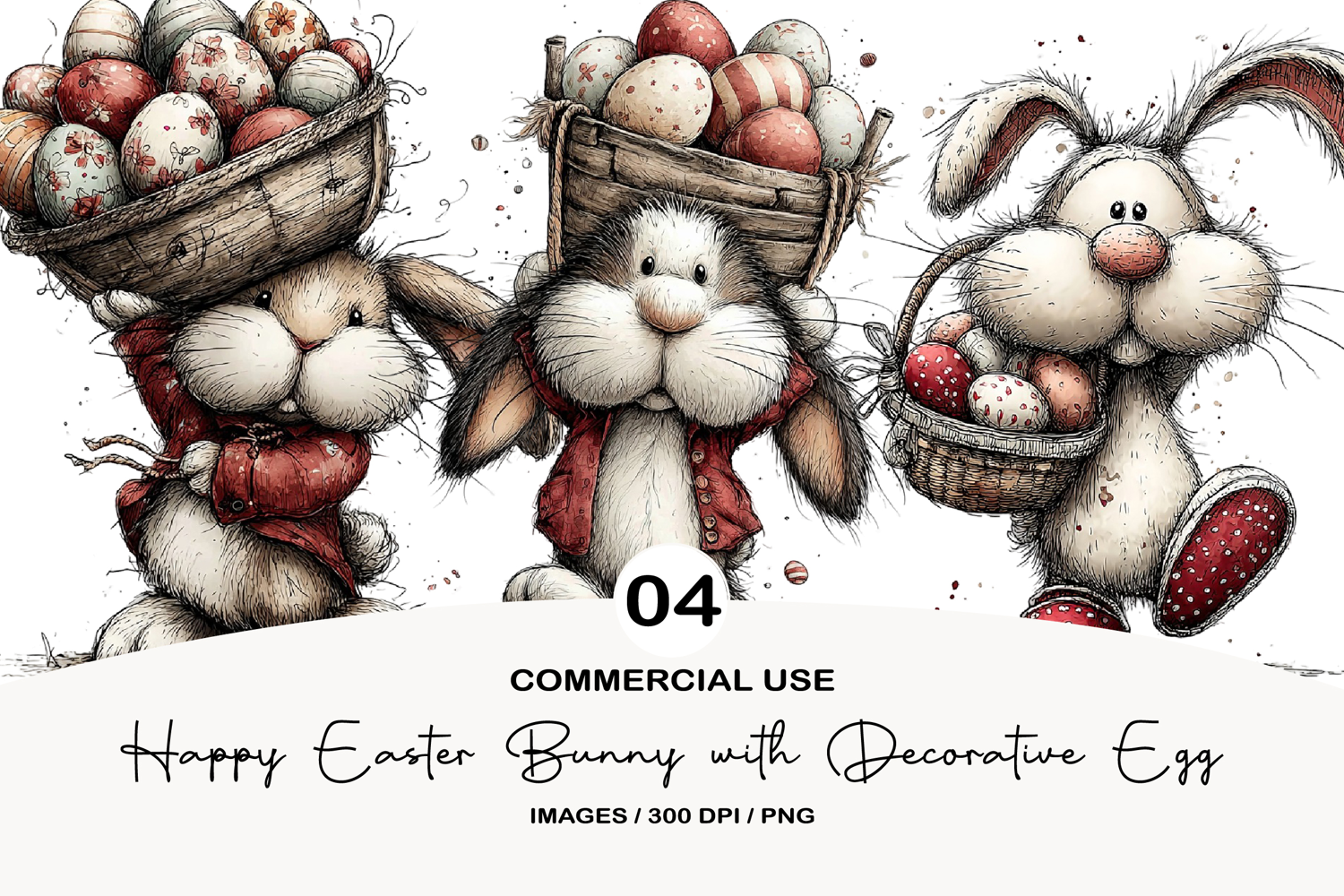 Illustration Png Easter Sticker Clipart Bundle Easter Clipart Sublimation Design Easter Png Spring Sublimation Easter Sublimation Happy Easter Bunny With Decorative Egg Basket