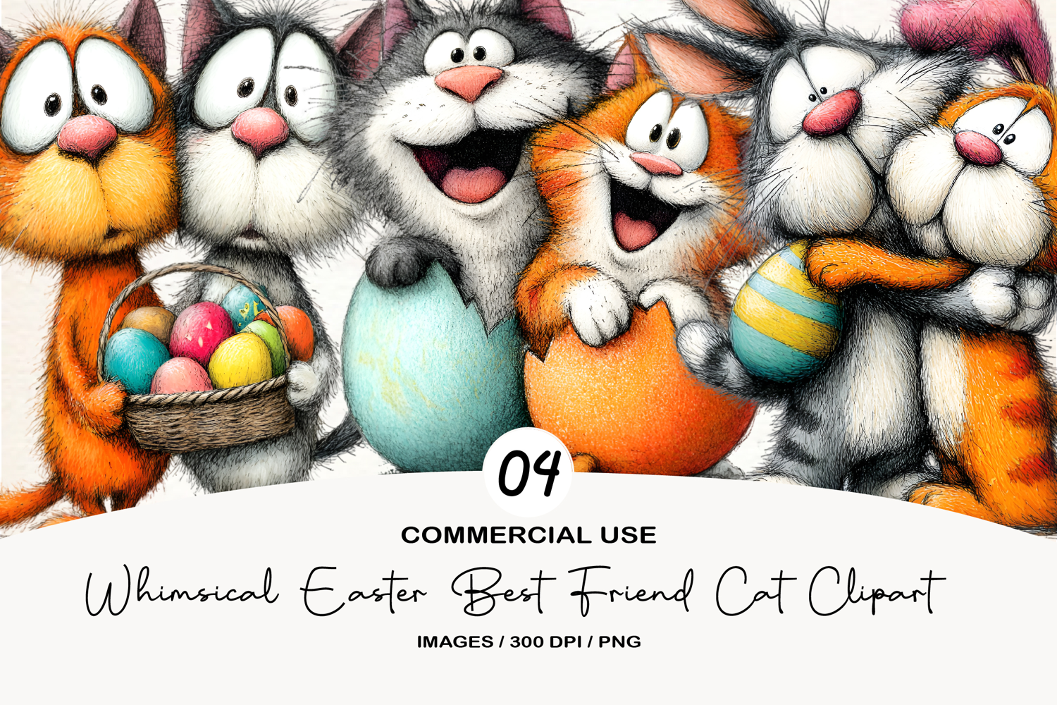 Whimsical Easter Best Friend Cat Clipart example image 1