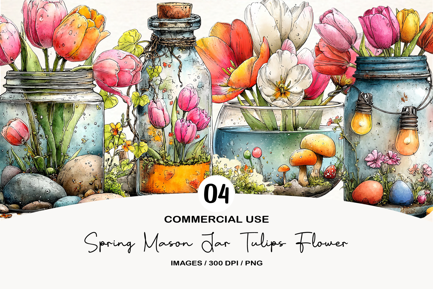 Spring Mason Jar Tulips Flower Clipart example image 1