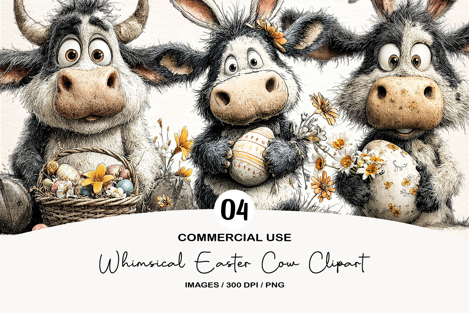 Whimsical Easter Cow Clipart