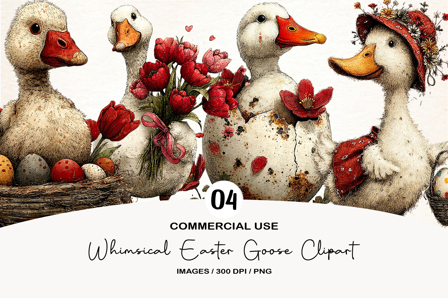 Illustration Png Easter Sticker Clipart Bundle Easter Clipart Sublimation Design Easter Png Spring Sublimation Easter Sublimation Whimsical Easter Goose Clipart