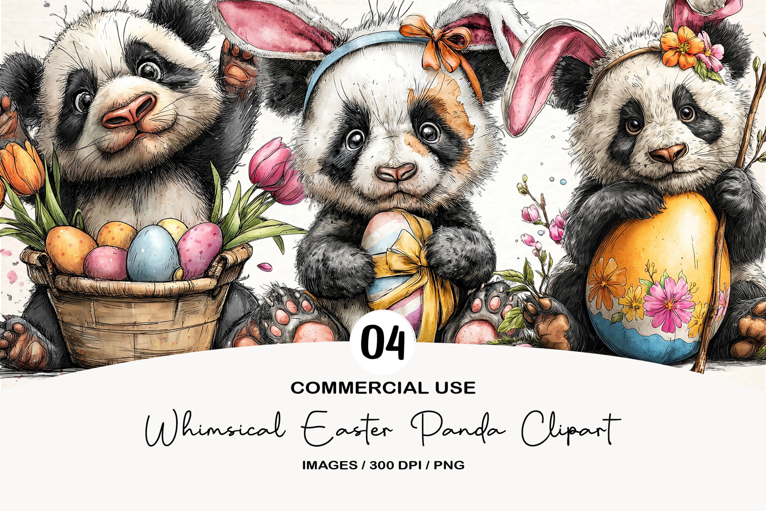 Whimsical Easter Panda Clipart example image 1