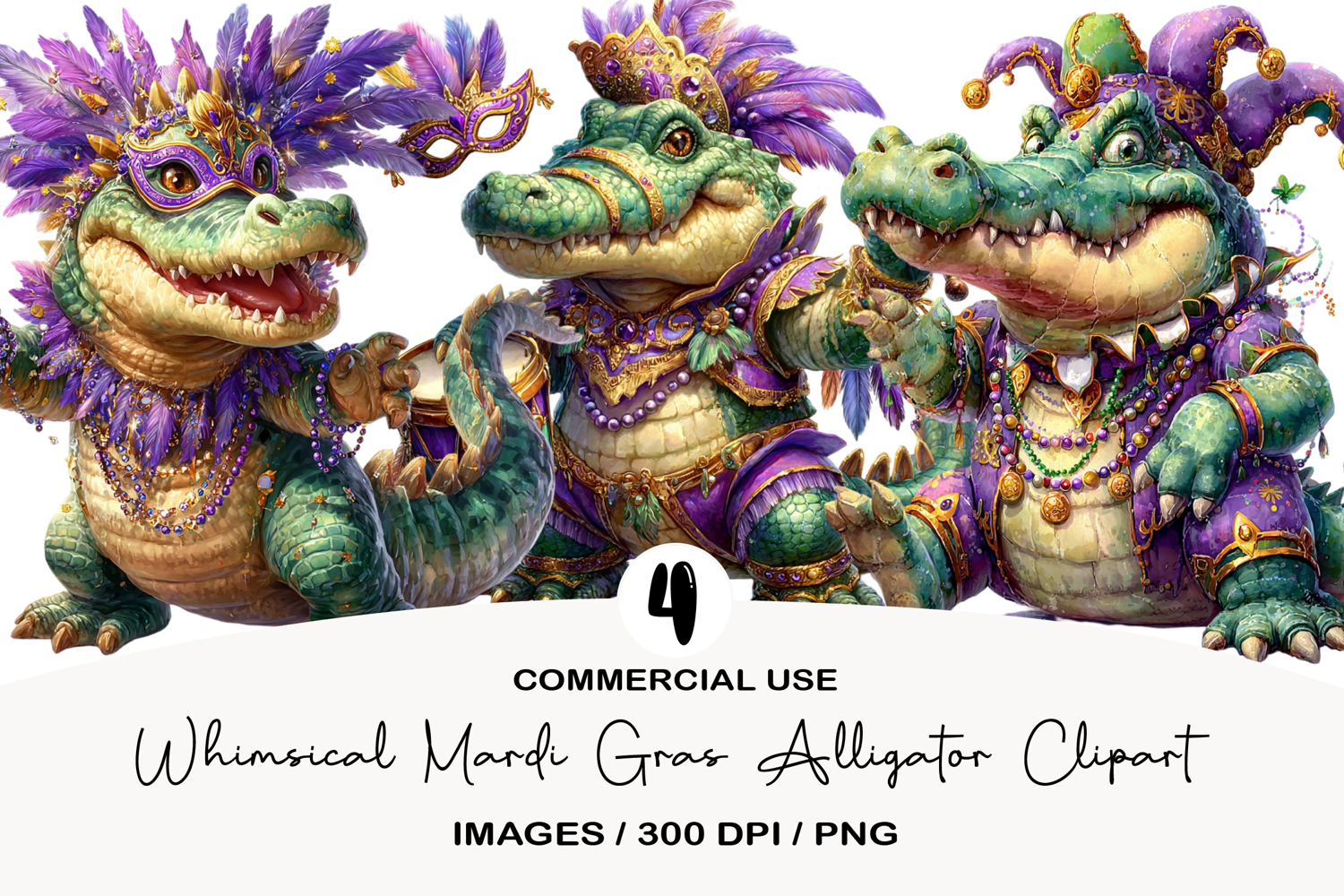 Similar Design Products to Whimsical Mardi Gras Alligator Clipart