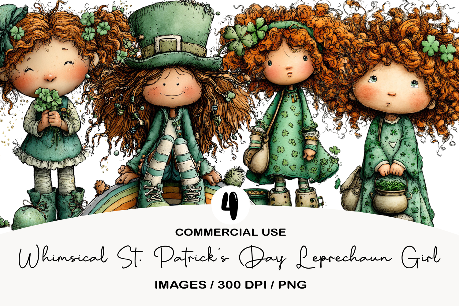 Whimsical St. Patrick’s Day Leprechaun Girl Clipart example image 1