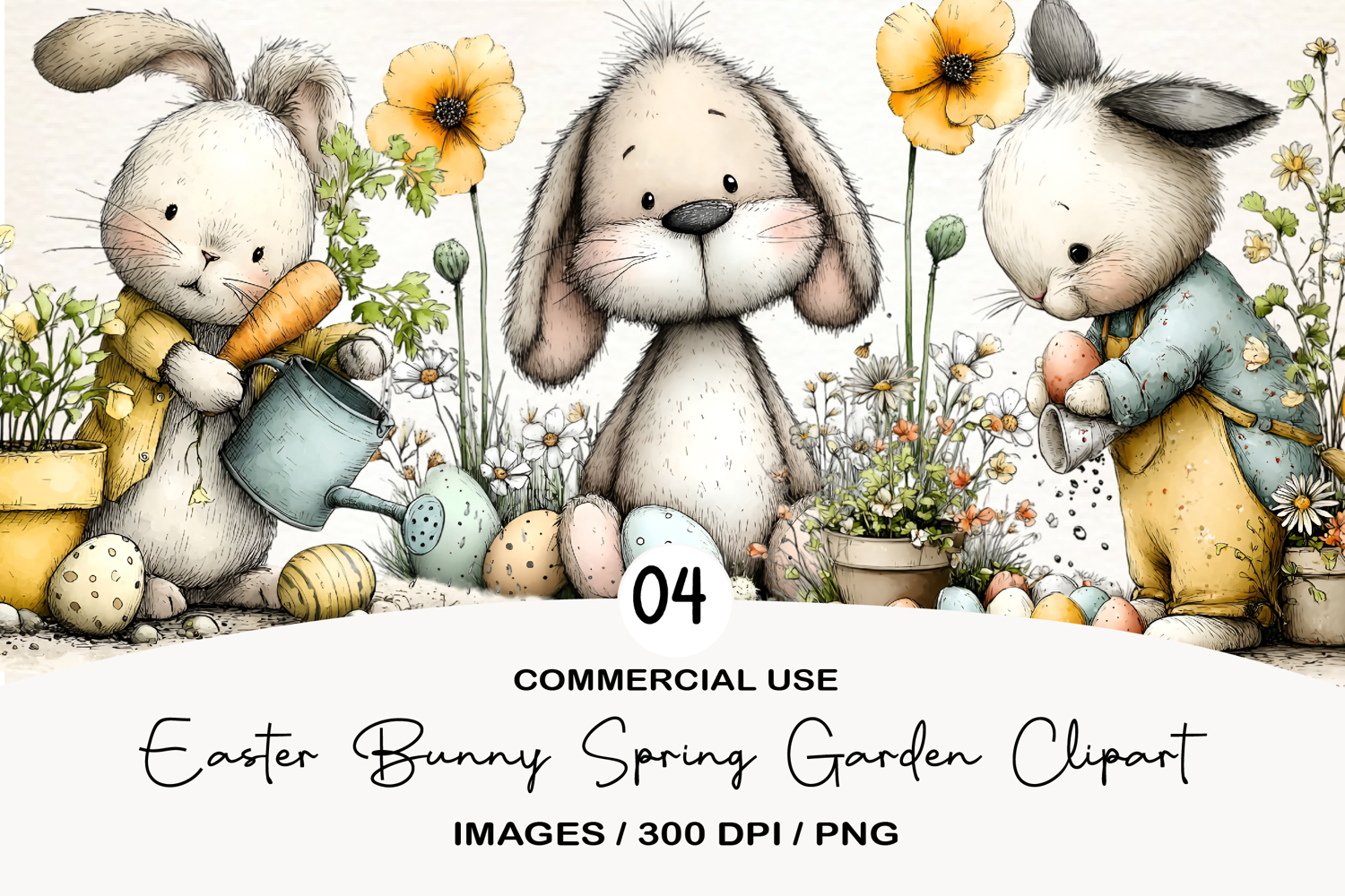 Easter Bunny Spring Garden PNG example image 1