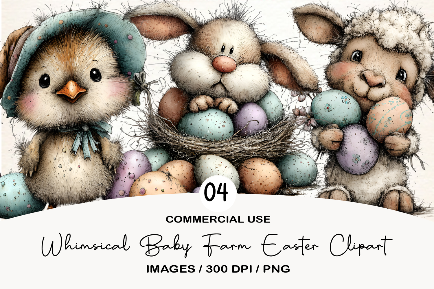 Similar Design Products to Whimsical Baby Farm Easter Clipart